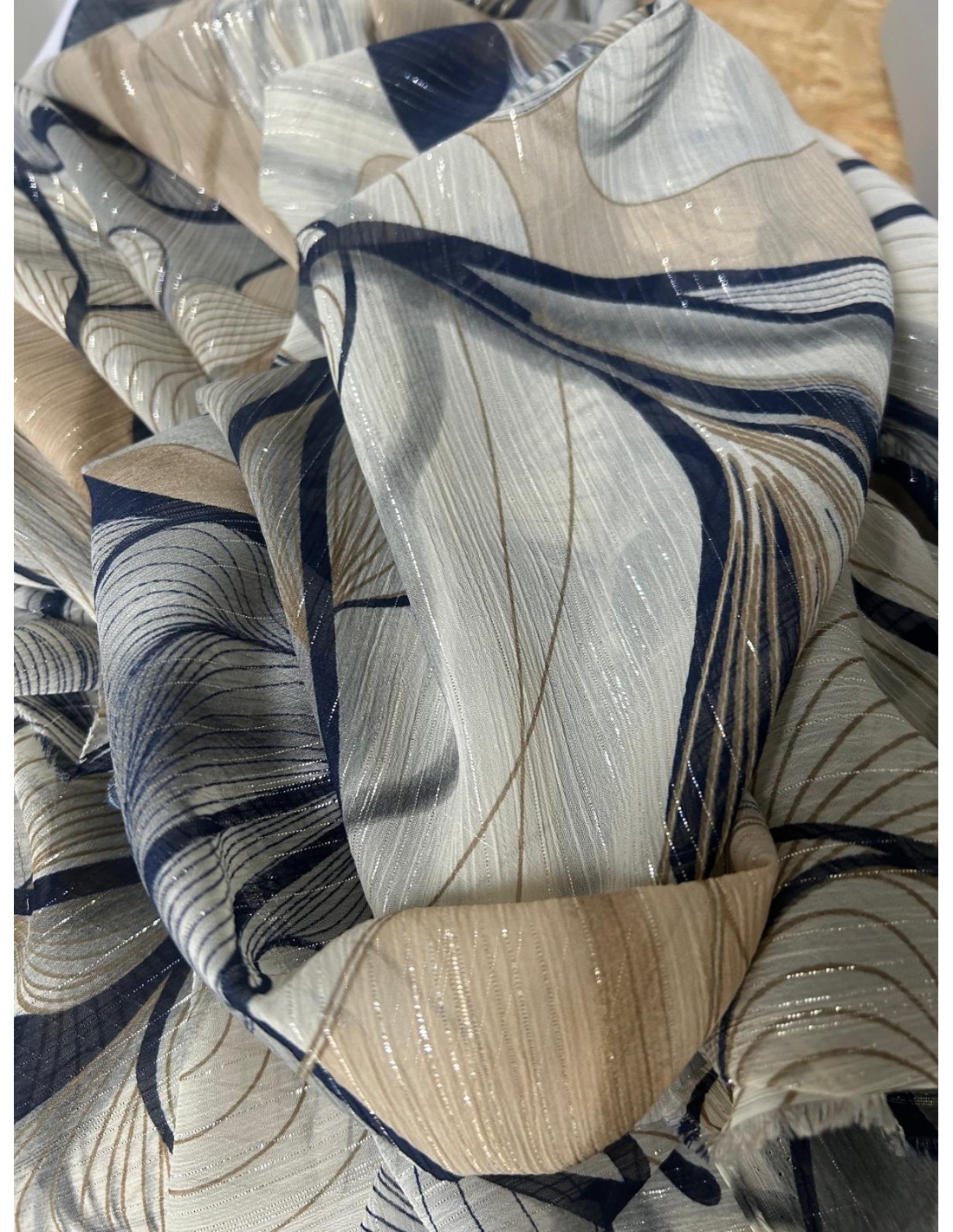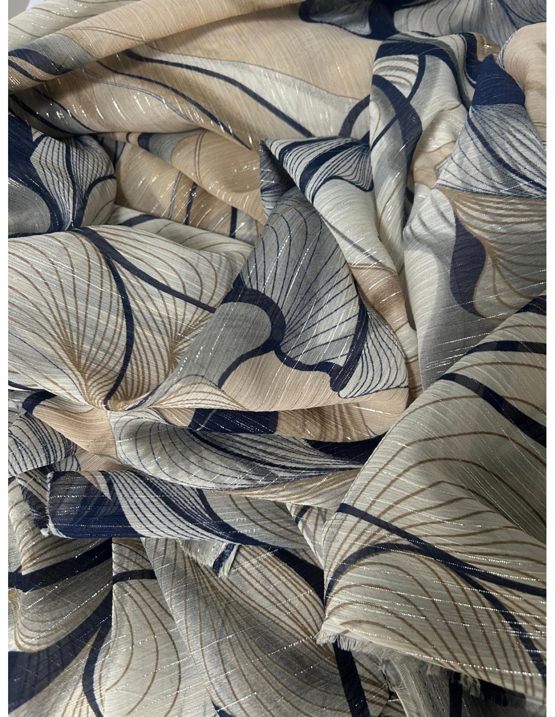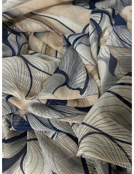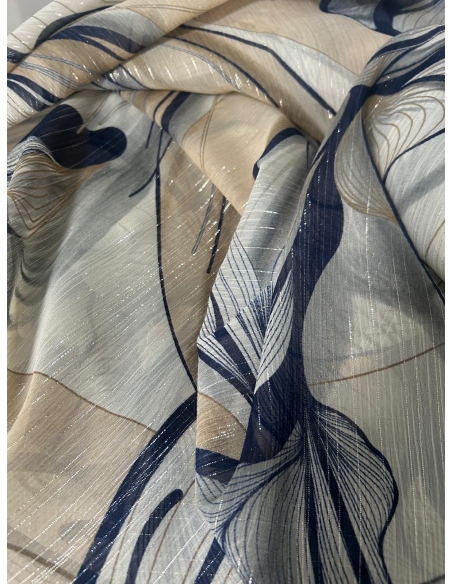 Tkanina szyfon ze srebrna nitka beżowo brązowy