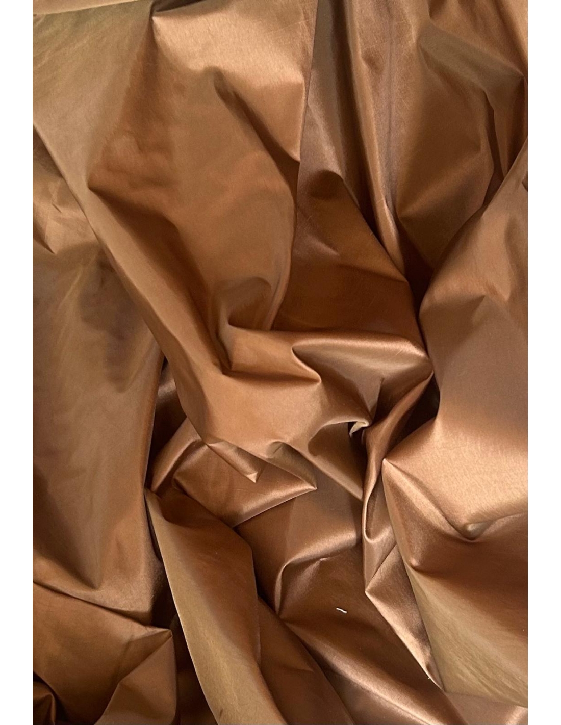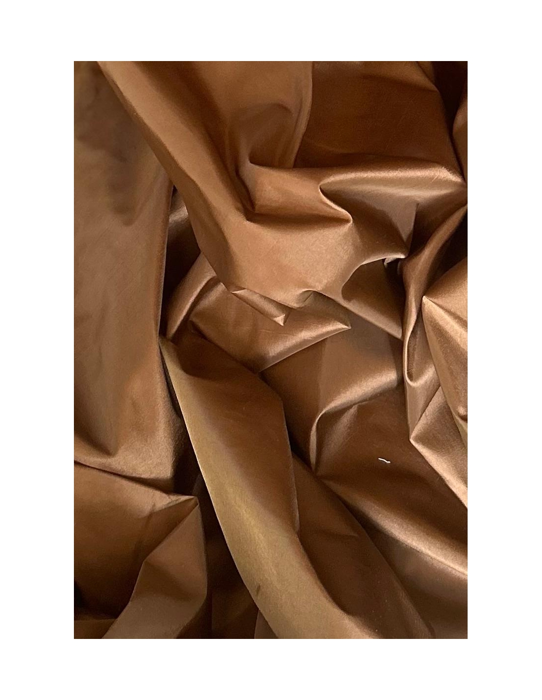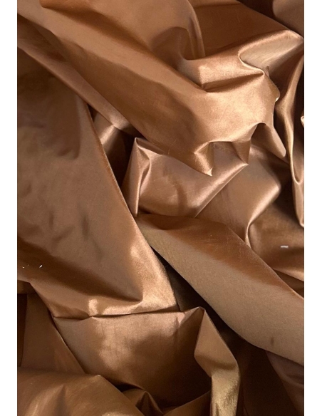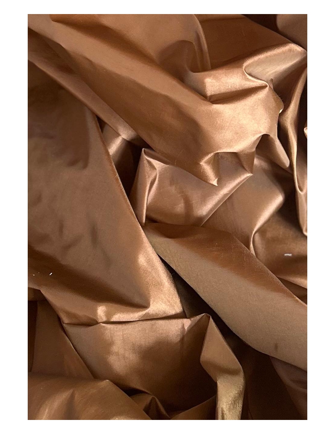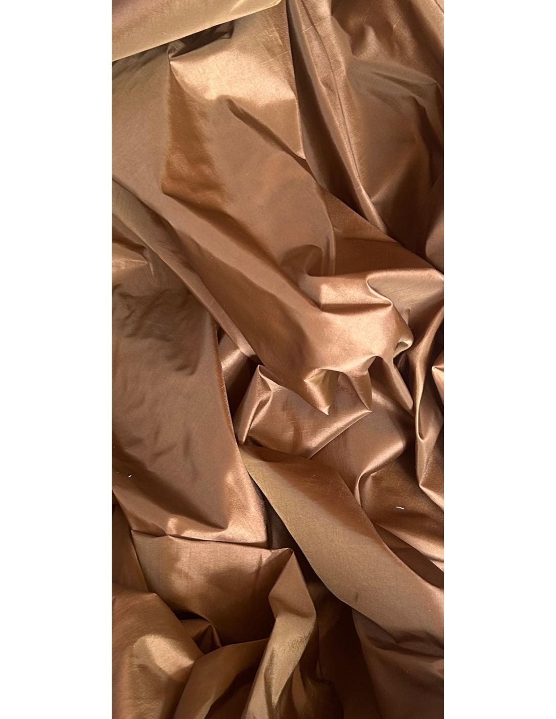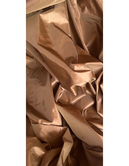 Tafta to tkanina połyskująca , elegancka , lekko szeleszcząca w odcieniu jasnego brązu ,toffi,.
