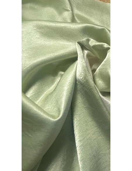 Szantung poliestrowy w odcieniu pistacji, limonki , jest tkaniną dwustronną z jednej strony błyszcząca , z drugiej strony surowa faktura ,obie strony do wykorzystania . Tkanina cieńsza ,lżejsza .