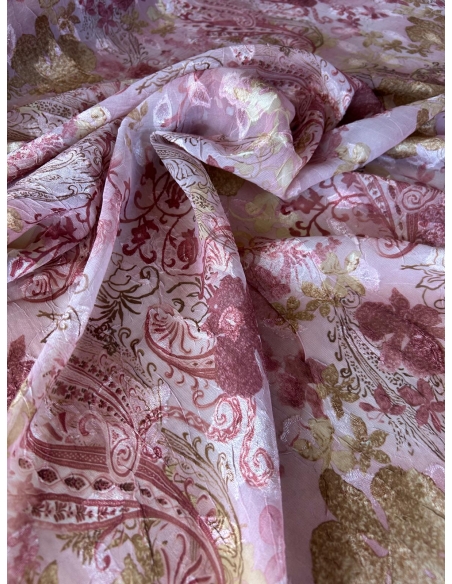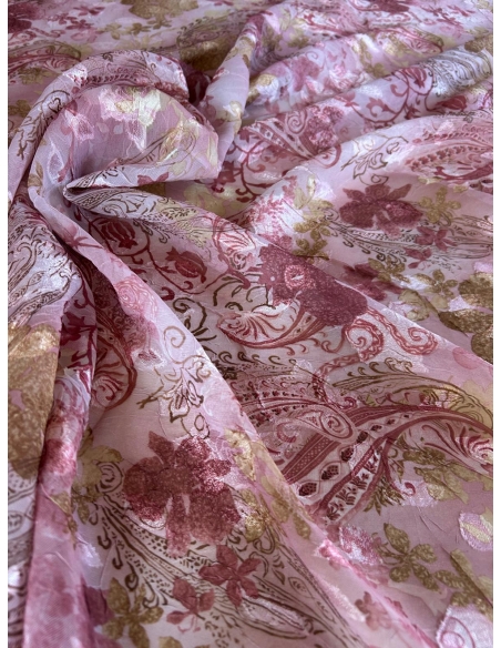 Tkanina szyfon żakard ornamenty różowy