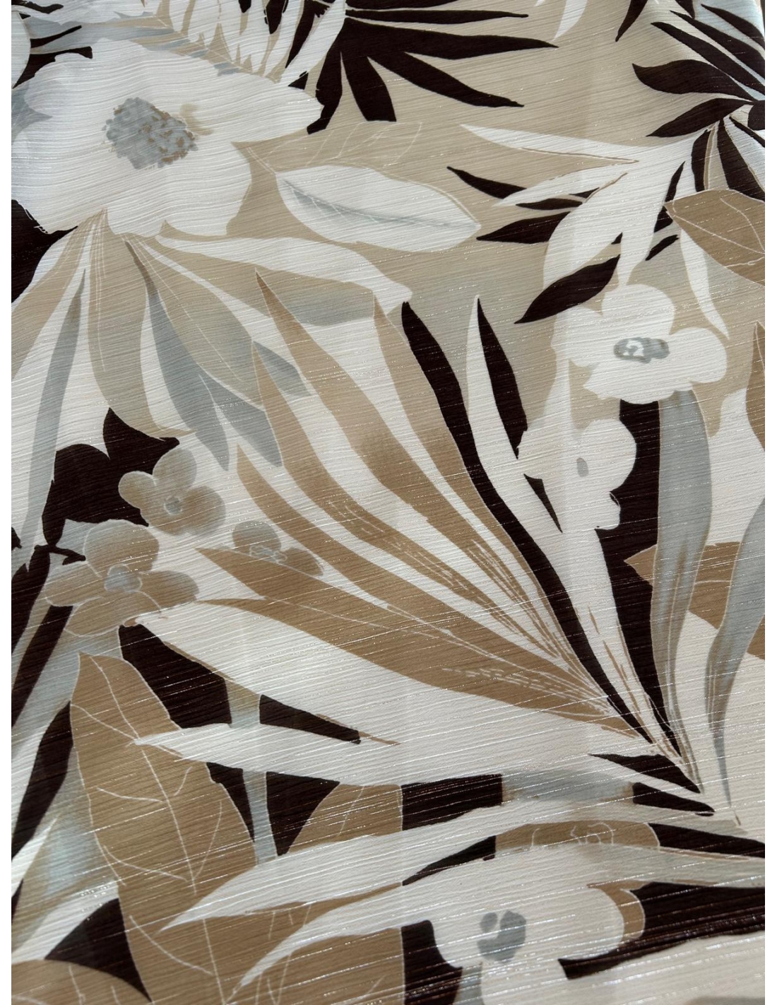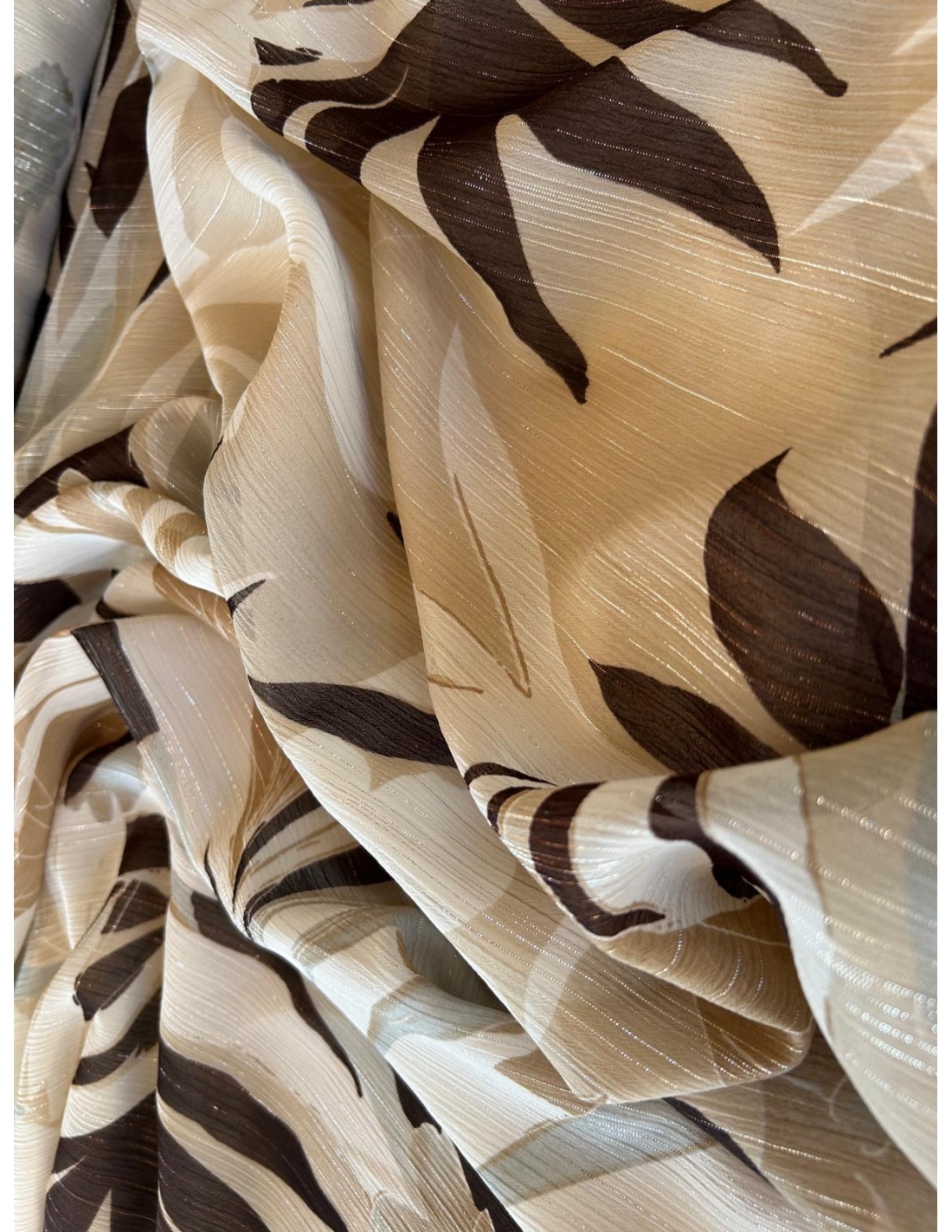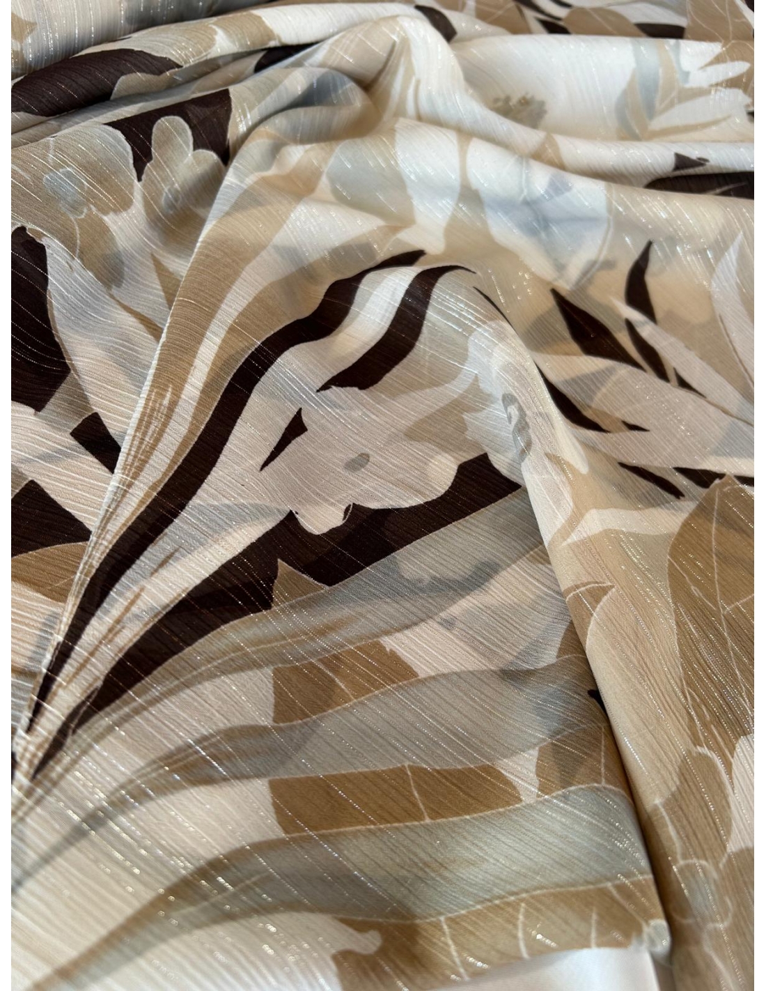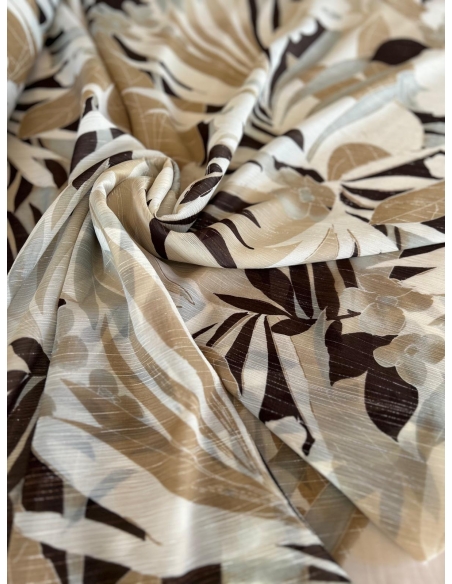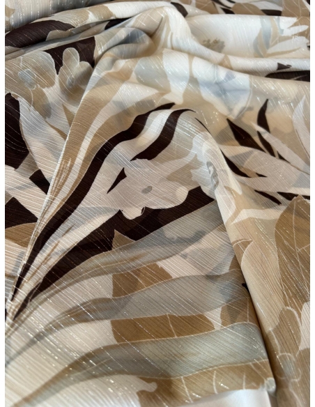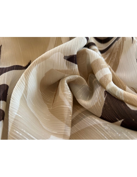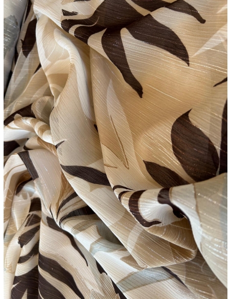 Tkanina szyfon  ze srebrną nitką w odcieniu bezowo-brązowym, drukowany – lekkość, elegancja i niepowtarzalny styl